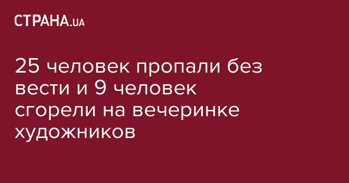 25 человек пропали без вести и 9 человек сгорели на вечеринке художников