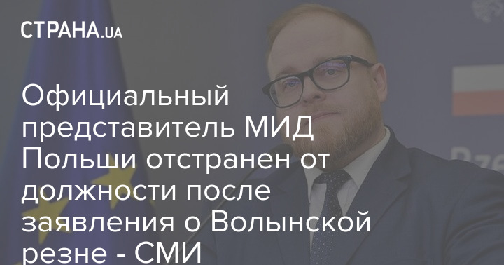 Официальный представитель МИД Польши Лукаш Ясина отстранен от должности после его заявления о Волынской резне.
