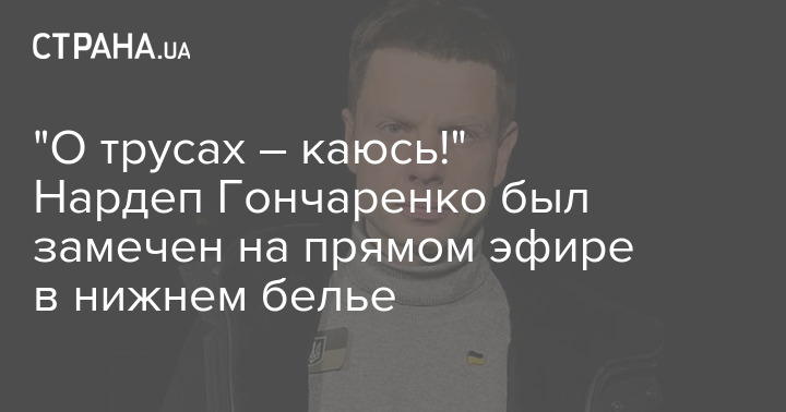 Народный депутат Алексей Гончаренко был замечен на прямом эфире в нижнем белье. На видео Гончаренко сидит в фиолетовой рубашке, из-под которой выглядывают полосатые трусы.