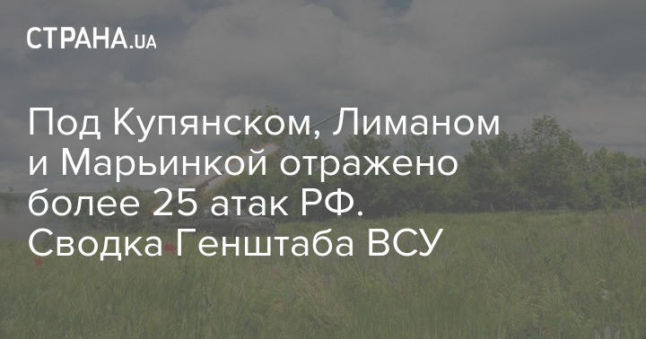 2. В Харьковской, Луганской и Донецкой областях отражено более 25 атак. Под Купянском - западнее Масютовки, а также в районе Куземовки. На Лиманском направлении - в районе Белогоровки и Спорного.