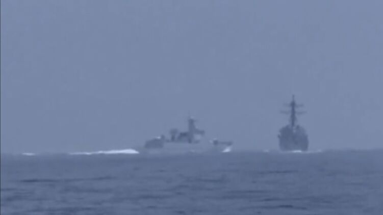 Китайский корабль чуть не столкнулся с эсминцем США. Фото: Скриншот из видео