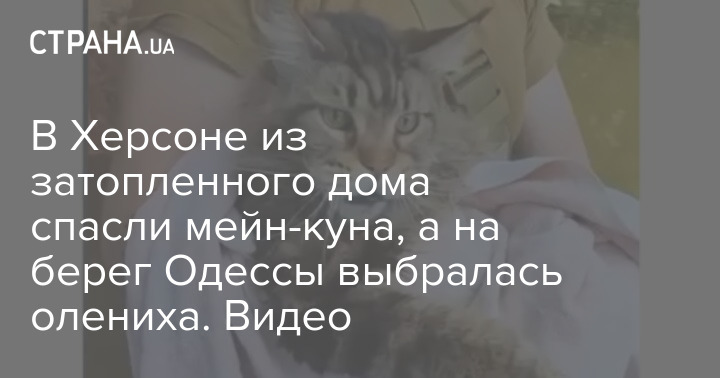 В Херсоне из затопленного дома спасли мейн-куна, а на берег Одессы выбралась олениха. Видео