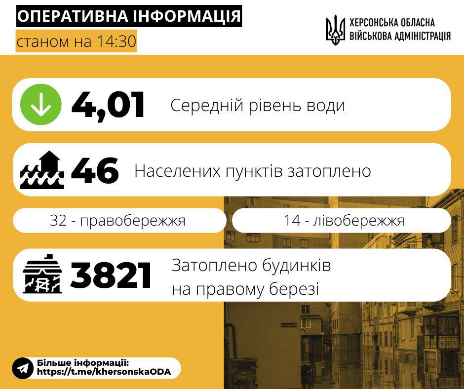 14:43 Херсонская обладминистрация заявляет, что вода постепенно отступает из Херсона.