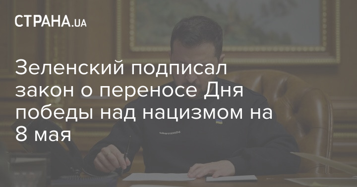 Президент Украины Владимир Зеленский подписал принятый парламентом законопроект №9278, которым предусмотрен перенос празднования Дня памяти и победы над нацизмом во Второй мировой войне 8 мая.