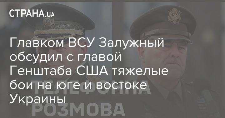 Главком ВСУ Валерий Залужный провел телефонный разговор с главой Объединенного комитета начальников штабов США генералом Марком Милли.