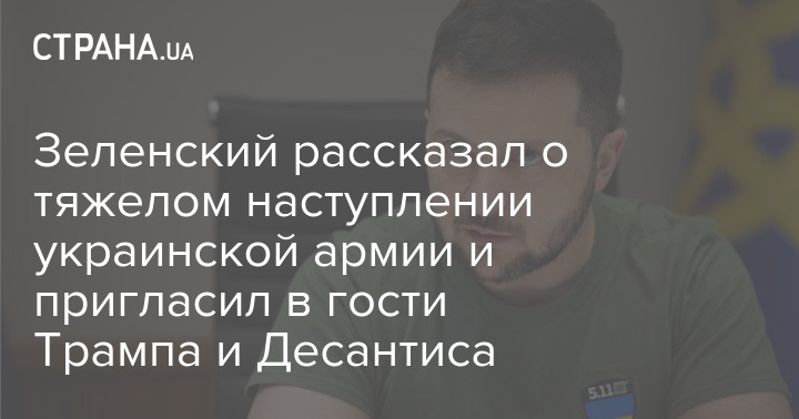 Зеленский рассказал о тяжелом наступлении украинской армии и пригласил в гости Трампа и Десантиса