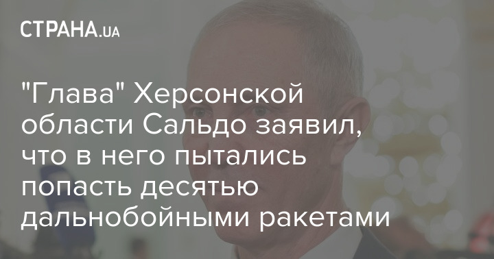 Назначенный россиянами "глава" Херсонской области Владимир Сальдо утверждает, что в прошлую пятницу по нему было выпущено около 10 ракет дальнего действия. Точнее, по его словам, атака производилась на те места, где Сальдо мог находиться.