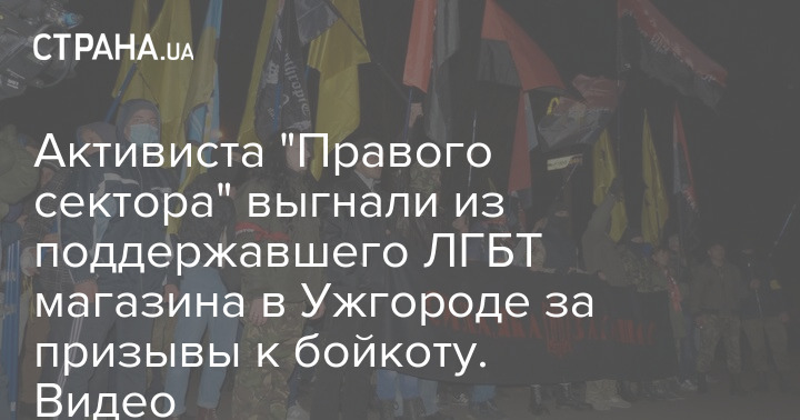 Позже телеграм-канал "Правого сектор"" опубликовал видео, как активиста с листовками вытолкали из магазина в Ужгороде.