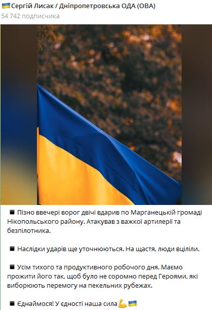 07.32 Поздно вечером РФ ударила по Марганецкой громаде Днепропетровской области. Последствия удара уточняются.