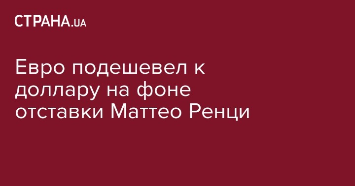 Курс евро по отношению к доллару США опустился до 20-месячного минимума после новостей об отказе итальянцев на референдуме от реформы Конституции и последовавшей отставки премьера Маттео Ренци. Об этом сообщает Reuters.