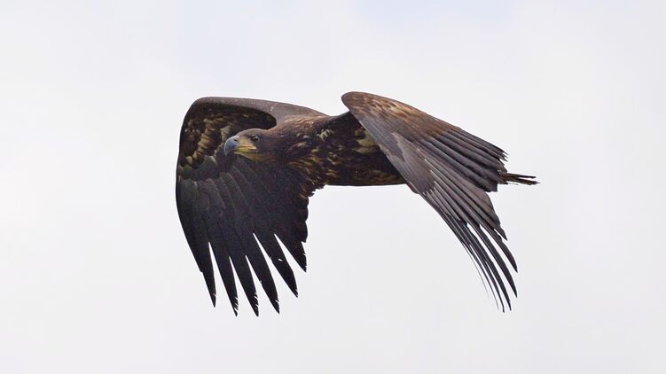 Орланы-белохвосты - одни из крупнейших представителей хищных птиц Евразии. Специалисты заповедникат наблюдать за ними в их природной среде обитания. Недавно у водоема-охладителя ЧАЭС заметили несколько этих величественных пернатых. Из гнезда неподалеку вылетел взрослый птенец орлана.