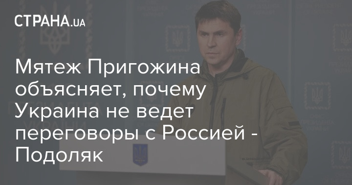 Советник главы Офиса президента Украины Михаил Подоляк на фоне прекращения мятежа Евгения Пригожина прокомментировал, почему Украина не видит возможностей переговоров с Россией.