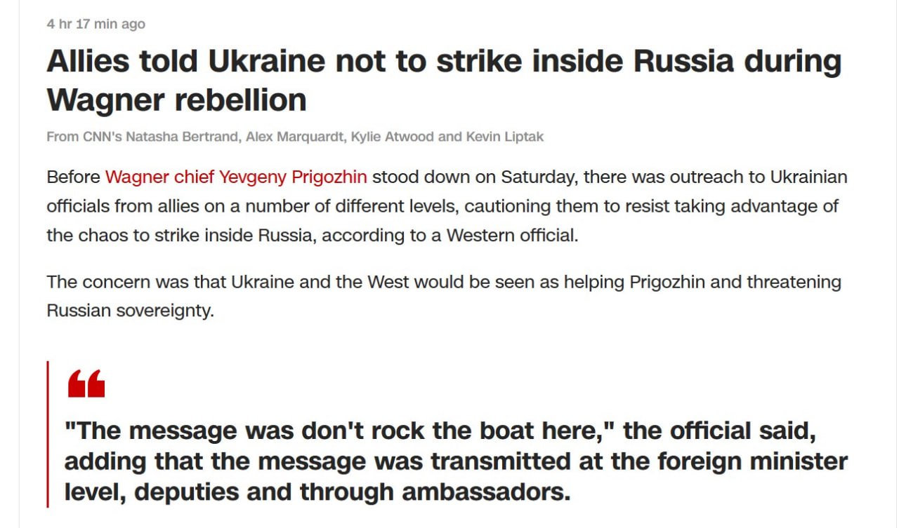 США и западные союзники просили Украину воздержаться от ударов по России в день мятежа - CNN