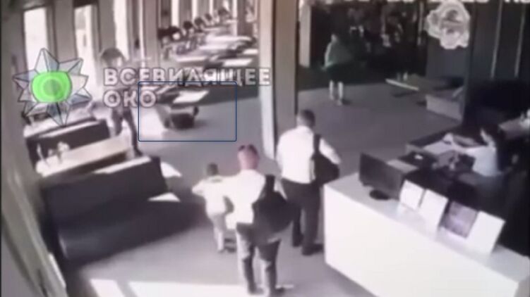 После выстрела через стекло человек упал на пол. Скриншот видео