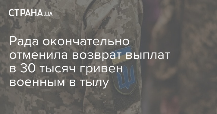 Верховная Рада окончательно отменила возврат выплат в 30 тысяч гривен военным в тылу. Такая правка заложена в законопроекте №9342, принятом сегодня в парламенте во втором чтении.