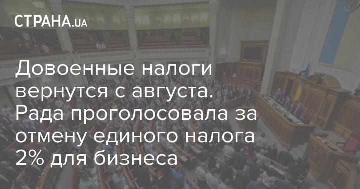 Довоенные налоги вернутся с августа. Рада проголосовала за отмену единого налога 2% для бизнеса