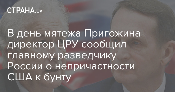 Через несколько часов после начала мятежа ЧВК "Вагнер" глава ЦРУ Уильям Бернс говорил с директором СВР Сергеем Нарышкиным с целью передать сообщение о непричастности к этому США.