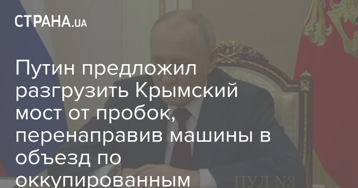 Президент РФ Владимир Путин предложил "рассмотреть со всех сторон" вопрос о перенаправлении автомобильного потока в Крым через захваченные территории Донецкой, Запорожской и Херсонской областей в связи с огромными пробками на Крымском мосту.
