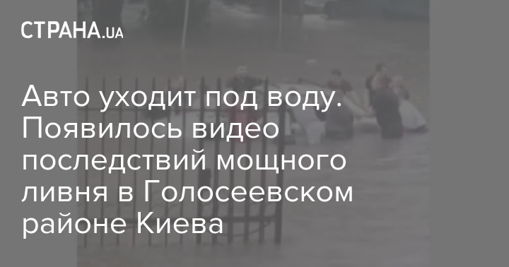 В сети появилось видео последствий мощного ливня в Киеве. В Голосеевском районе почти полностью ушел под воду автомобиль.