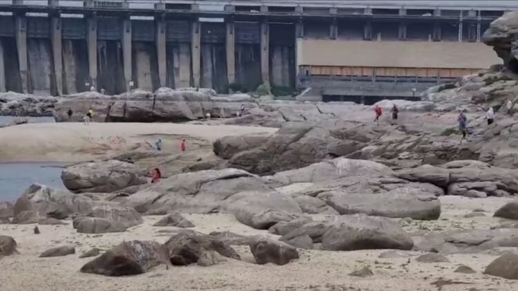 На видео можно заметить, что воды на этом участке реки практически не осталось.