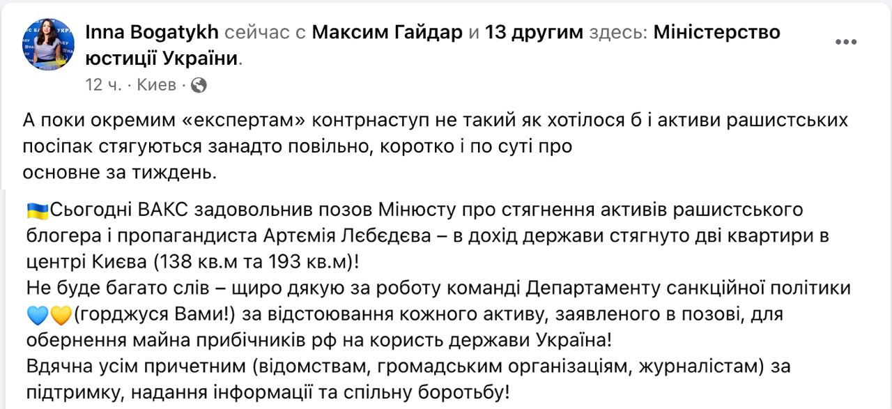 ВАКС конфисковал две киевские квартиры российского дизайнера и блогера Артемия Лебедева, который находится под санкциями СНБО.
