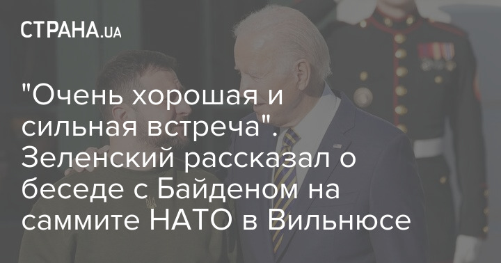 Президент Украины Владимир Зеленский назвал свою встречу с президентом США Джо Байденом в Вильнюсе "очень хорошей" и "сильной".