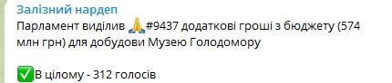 Верховная Рада выделила более полумиллиарда гривен на достройку музея Голодомора