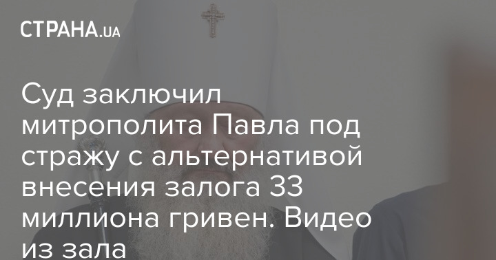Соломенский районный суд Киева удовлетворил ходатайство прокуроров об изменении меры пресечения наместнику Киево-Печерской лавры митрополиту Павлу с круглосуточного домашнего ареста на содержание под стражей с возможностью внесения залога в размере 33 миллиона гривен.
