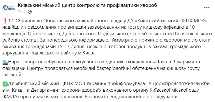 Об этом сообщает Киевский городской центр контроля и профилактики заболеваний на своей странице в Фейсбуке .