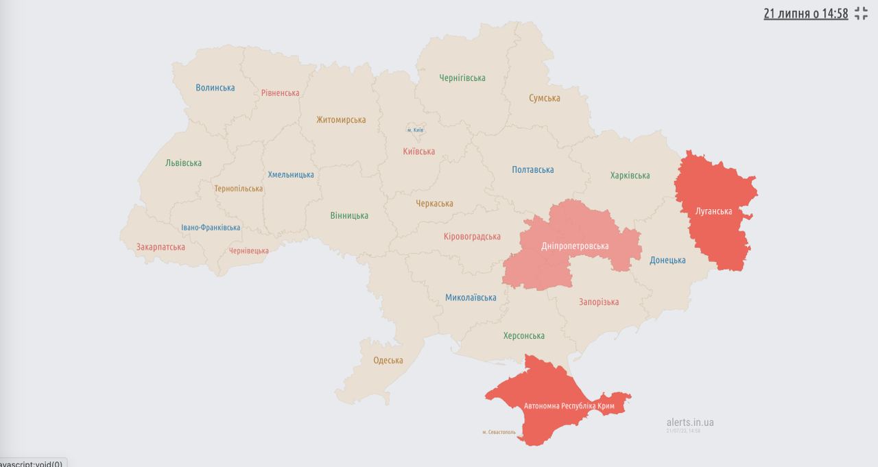 23.23 Воздушная тревога в трех южных областях: Одесской, Николаевской и Херсонской. Сообщают о ракетной угрозе.