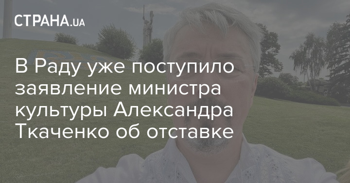 В Раду уже поступило заявление министра культуры Александра Ткаченко об отставке, сообщил спикер парламента Руслан Стефанчук в своем телеграм-канале.