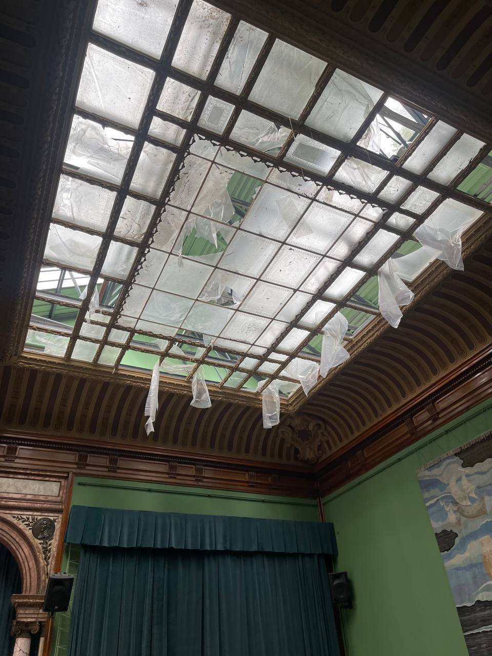 В сети появилось фото из Дома учёных - памятника архитектуры в центре Одессы, который пострадал во время российской ракетной атаки.