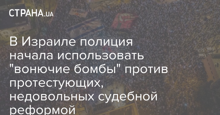 Израильская полиция начала использовать цветную воду ("скунса") против манифестантов, которые протестуют против принятой Кнессетом судебной реформы.