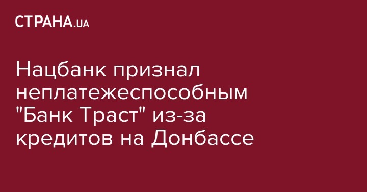 "Правление Национального банка Украины приняло решение № 468-рш/БТ "Об отнесении публичного акционерного общества "Банк Траст" к категории неплатежеспособных", - говорится в сообщении НБУ.