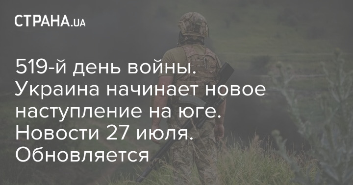 В четверг, 27 июля, в Украине идет 519-й день войны с Россией.