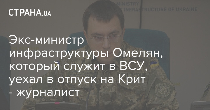 Экс-министр инфраструктуры Владимир Омелян, который служит капитаном ВСУ, убыл в отпуск на остров Крит.