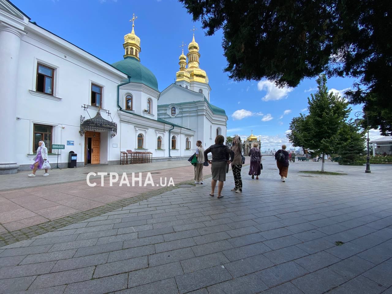 Крестный ход был непродолжительным и ограничился территорией Нижней лавры. После его завершения часть верующих продолжила молитвенное стояние у главных ворот.