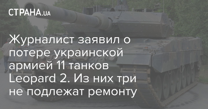 ВСУ потеряли 11 танков Leopard 2, из которых три уничтожены полностью и не подлежат восстановлению и использованию в бою.