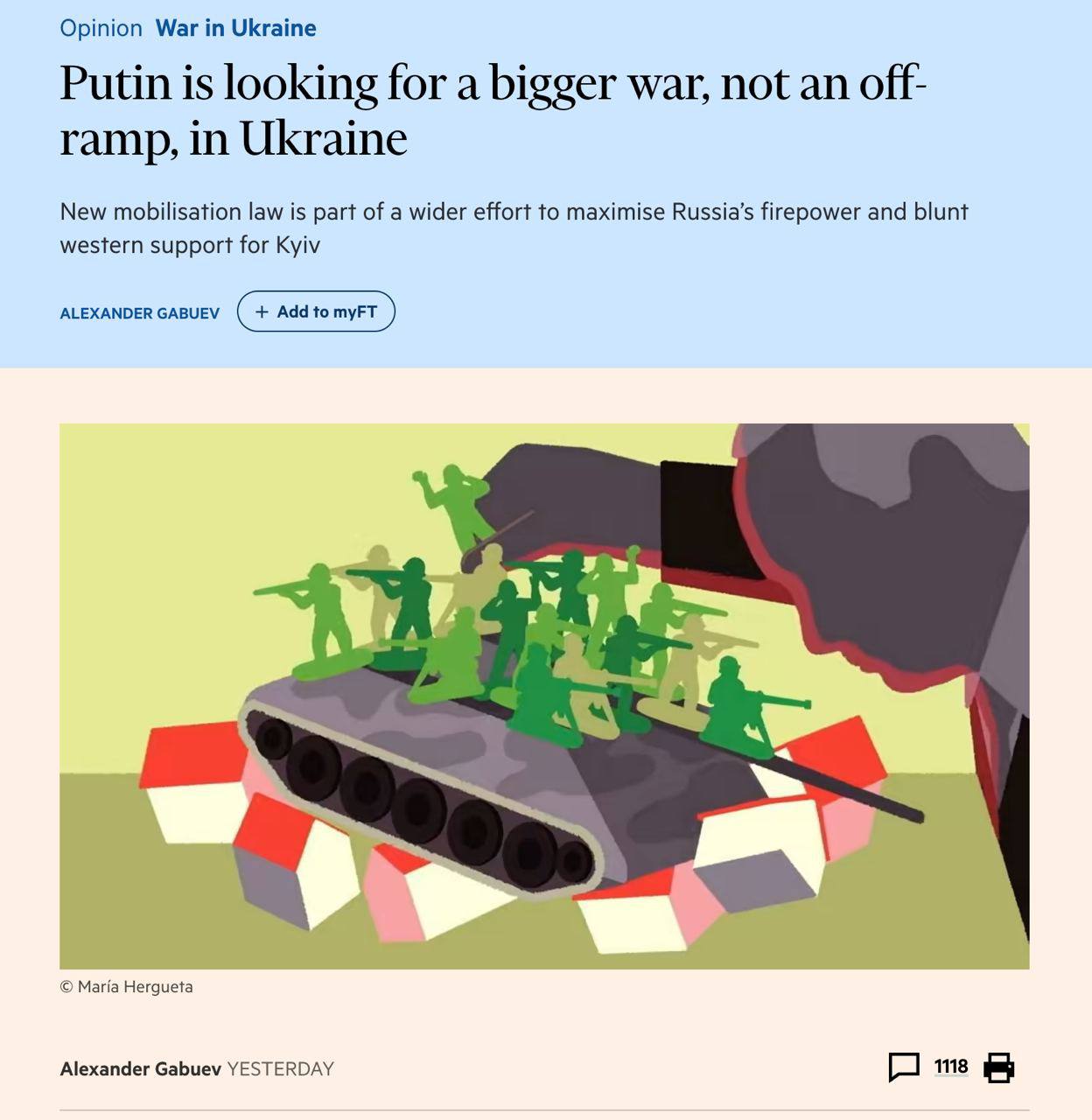 "Путин делает ставку на то, что российский человеческий ресурс, который потенциально может быть мобилизован, в три-четыре раза больше украинского, и единственная неотложная задача — иметь возможность использовать этот ресурс по своему желанию: мобилизовать гораздо больше людей, вооружить их, обучить их и отправить в бой", - пишет издание.