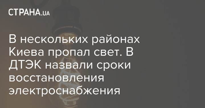 ДТЭК сообщает об аварийных отключениях света в отдельных районах Киева. Его обещают вернуть к 02:00 ночи.
