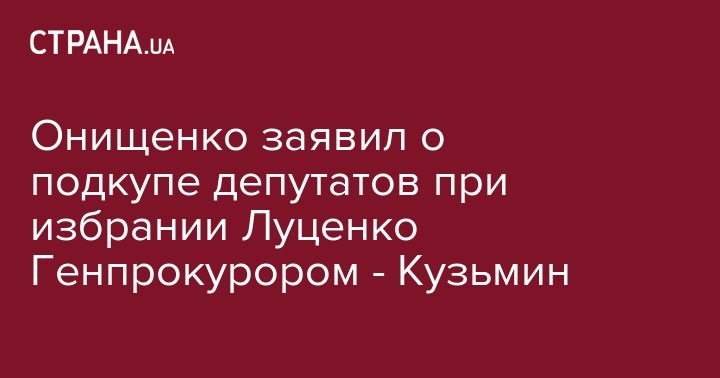Экс-заместитель генпрокурора Ренат Кузьмин сообщил, что получил от беглого депутата Александра Онищенко, ранее пообещавшего выложить компромат на Петра Порошенко по поводу подкупа нардепов, информацию, что Юрий Луценко был назначен генпрокурором благодаря взяткам, розданным депутатам.