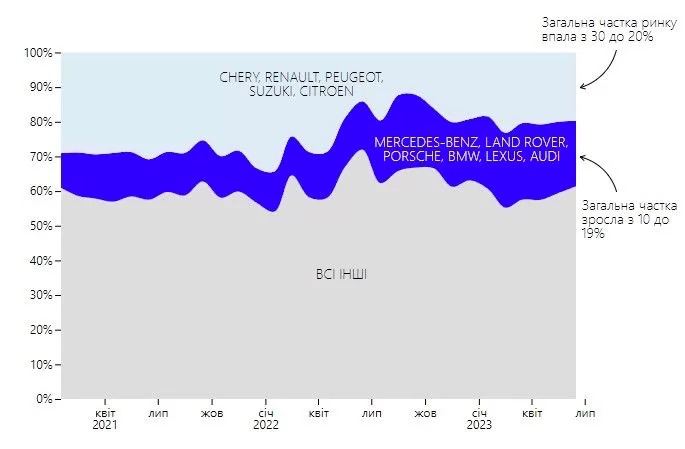 В Украине в 2023 году выросла продажа автомобилей премиум-сегмента: BMW, Mercedes-Benz и Lexus.