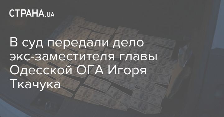 В суд передано дело бывшего замглавы Одесской ОГА Игоря Ткачука, которого подозревают в получении 10 тысяч долларов взятки.