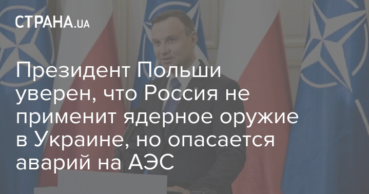 "Если говорить о ядерной угрозе, то меня гораздо больше волнуют возможные проблемы с атомными электростанциями в Украине. Я опасаюсь, что скорее всего может произойти нечто похожее на ядерную аварию. По моему убеждению, угроза взрыва на АЭС гораздо выше, чем в случае применения ядерного оружия", – добавил президент Польши.