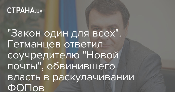 "Закон один для всех". Гетманцев ответил соучредителю "Новой почты", обвинившего власть в раскулачивании ФОПов