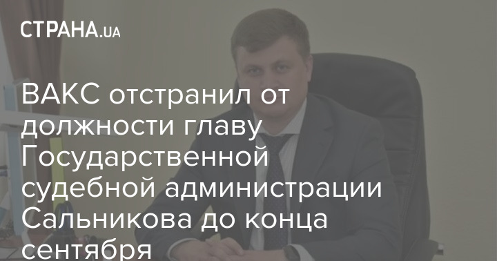 ВАКС отстранил от должности до конца сентября главу Государственной судебной администрации Украины Алексея Сальникова, которого НАБУ подозревает в подстрекательстве к взятке судьям Верховного Суда за вынесение нужного решения в пользу коммерческого предприятия.