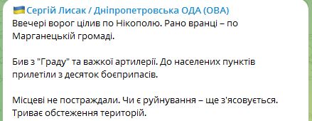 Вечером силы РФ обстреляли Никополь. Рано утром 16 августа – Марганецкую громаду.