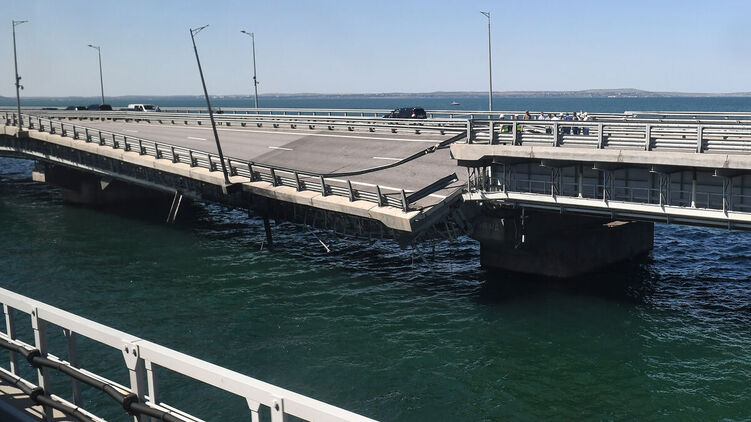 На кадрах видно, что железнодорожная ветка моста также была атакована. Однако она не получила сильных повреждений.