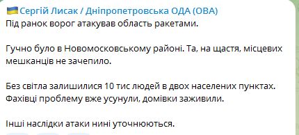 07.35 Утром РФ ударила по Новомосковскому району Днепропетровской области.