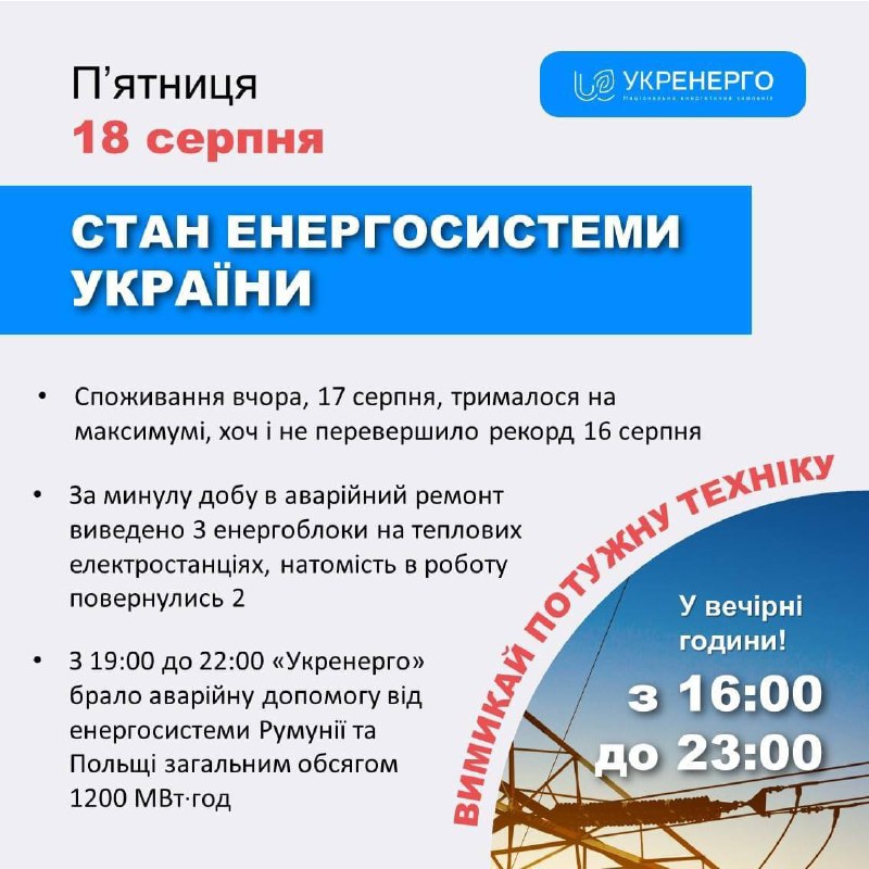 17 августа потребление электроэнергии в Украине снова вышло на максимальный уровень за все лето, хотя рекордным остается 16 августа.